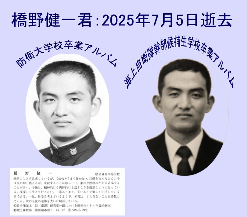 《訃報連絡》橋野健一君 海上21期 2025年7月5日逝去